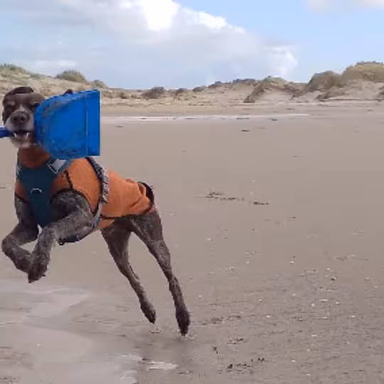 hier ist der tolle Oleg, ein sehr liebenswerter 6jähriger Deutsch Drahthaar Rüde (kastriert), als Welpe aus dem Tierschutz ins fürImmerZuhause gezogen. Ich liebe meine Menschen und meine Menschen lieben mich. Zu Hause bin ich sehr verschmust und schlafe viel. Draußen bin ich gern lange unterwegs, laufe am Fahrrad oder mit Herrchen (Canicross) und apportiere, was du mir anbietest (s.Foto). Leider habe ich noch nicht alle Ängste aus meiner Welpenzeit überwunden, so dass ich bei Hundebegegnungen an der Leine manchmal unsicher bin und dann auch mal pöble. Ohne Leine treffe ich andere Hunde gern. Mit kleinen Kindern und Katzen bin ich nicht kompatibel. Da ich immer Angst habe, dass Herrchen und Frauchen nicht wiederkommen, habe ich es in 5 Jahren nicht gelernt allein zu bleiben. Seit fünf Jahren arbeiten darum beide zeitlich versetzt und reduziert, so dass sie sich kaum noch sehen, nur damit ich bei ihnen bleiben kann. Da das aber nicht noch 7-8 Jahre (meine Lebenserwartung) so weitergehen kann, suche ich auf diesem Weg dringend Menschen, die mich in oder um Lübeck tageweise bei sich haben möchten- ich freue mich über jeden Menschen und bin -natürlich nach einem angemessenen Kennenlernen- gerne mit dir unterwegs. Bitte melde dich!