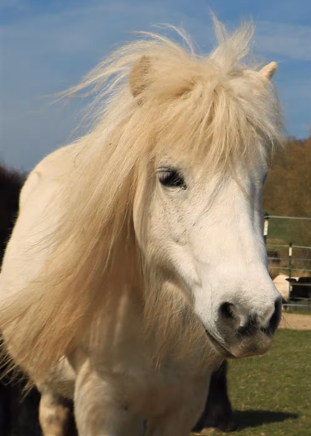 Flocke lebt seid März 2019 bei uns auf dem Hof. Sie wurde von anderen Tierfreunden aus einer nicht sehr guten Haltung geholt. Leider konnten die Tierfreunde sie nicht weiter versorgen und fragten uns, ob wir Flocke bei uns auf nehmen könnten. Flocke leidet auch an Hufrehe und darf deshalb nur stundenweise auf die Wiese. Sie mag Kinder sehr gern und geht gern spazieren.