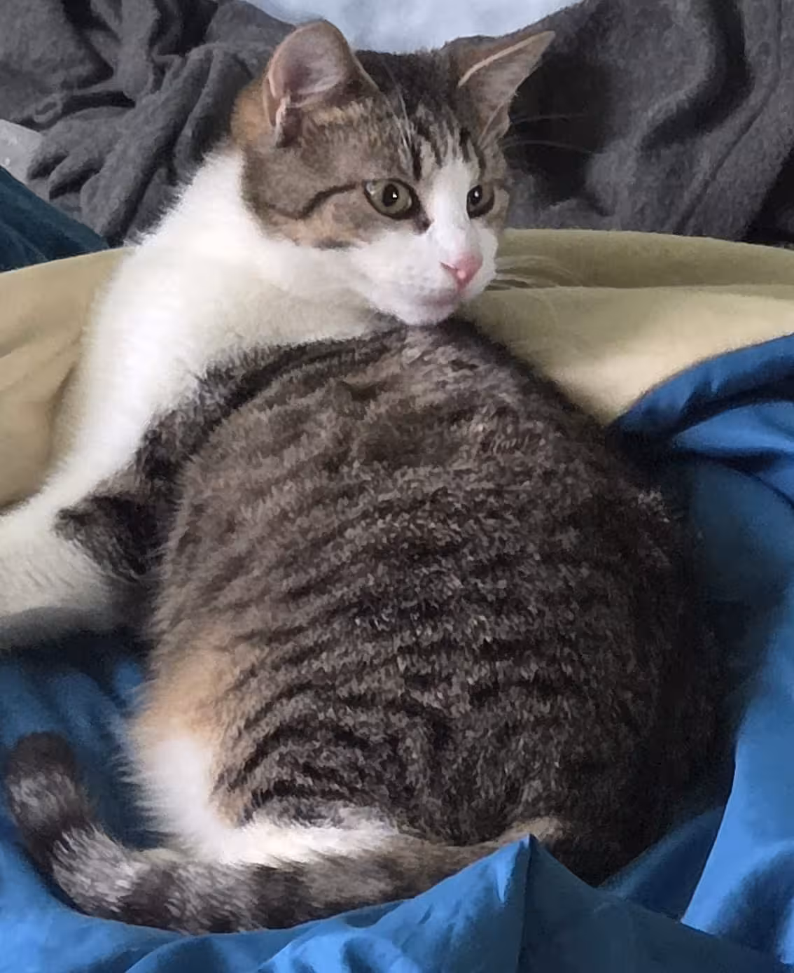 Beide sind altersbedingt natürlich sehr neugierig, verspielt, aufgeweckt und lieben ihre Verfolgungsjagden durchs Haus und die spielerischen Kämpfe miteinander. Sie werden nur zusammen vermittelt, denn sie lieben sich sehr und wir wollen sie nicht voneinander trennen.