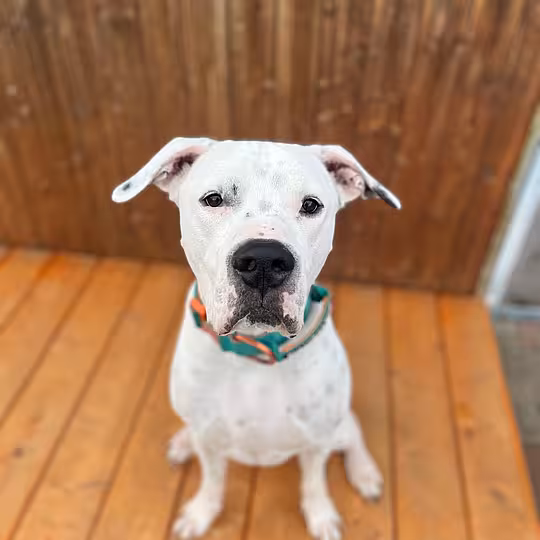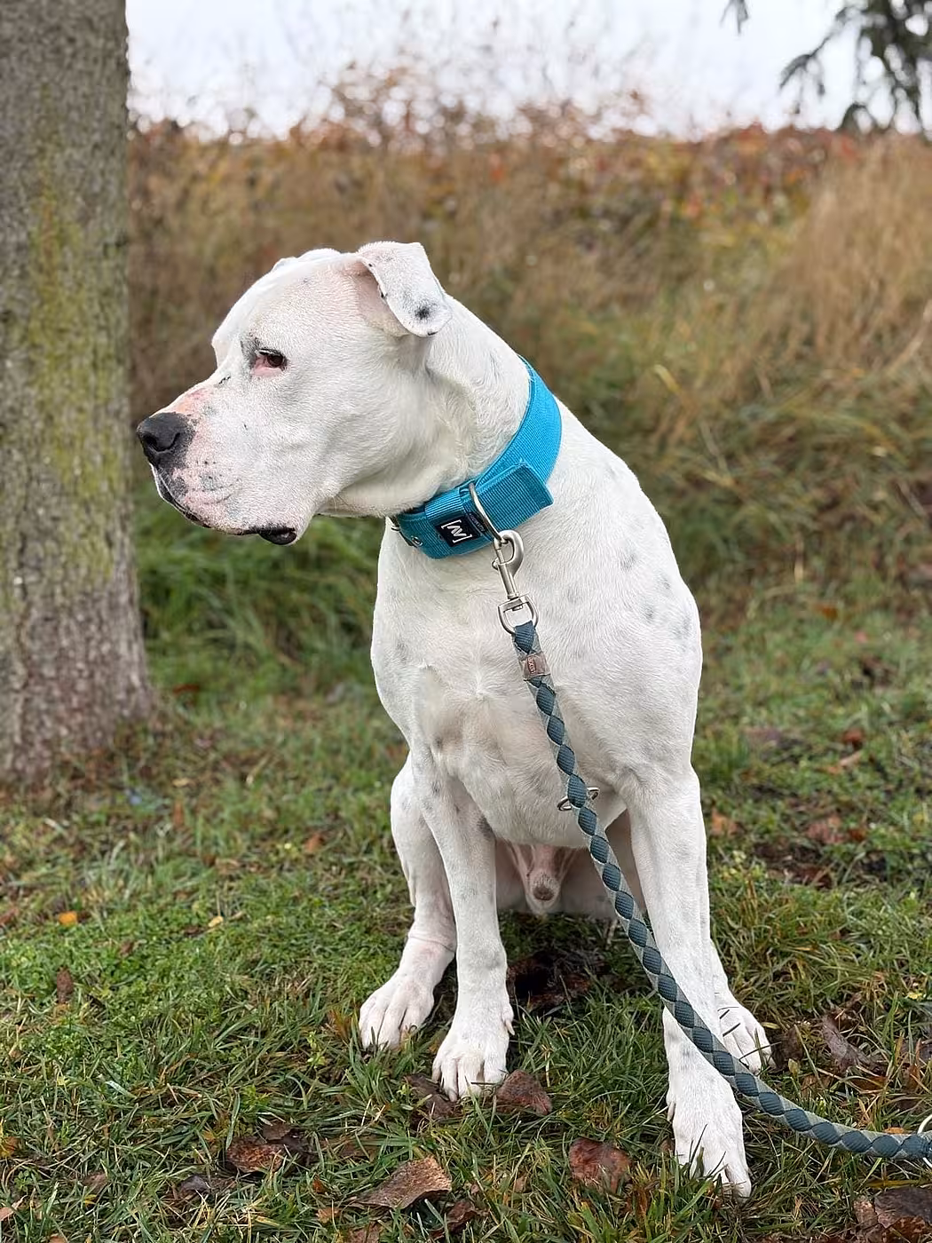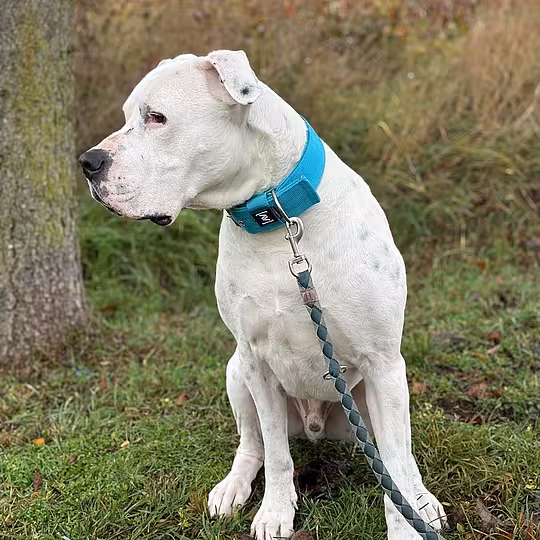 Unser lieber Araz kam aus Bayern über eine Hundepension zu uns. Dort landete er nach ganzen 6 Vorbesitzern, die ihn mehr oder weniger als Statusobjekt herumreichten. Damit das nicht wieder passiert, kümmerte sich eine Mitarbeiterin der Pension um seine Vermittlung. Diese gestaltet sich aber als sehr schwierig, da der hübsche Dogo Argentino in Bayern durch die Rasseliste arge Probleme hat. Nach einem Jahr vergeblicher Suche nach einem neuen Zuhause schrieb die Pension mehrere Tierheime an, um einen Platz in einem Bundesland zu finden, wo Araz eine Chance auf Vermittlung hat. Und so kam der große Kerl zu uns. Nach ein paar E-Mails, Telefonaten und einer 4-Stunden-Autofahrt kam er endlich hier an und nun sind wir bereit, das passende Zuhause für ihn zu finden! Araz wurde am 30.01.2021 geboren und ist bereits gechipt, geimpft, entwurmt und kastriert. Er zeigte sich bei uns absolut Tierarztfromm, aufgeschlossen und freundlich. Am liebsten würde Araz den ganzen Tag nur kuscheln und gefallen. Bei einer Runde über unser Tierheimgelände konnten wir feststellen, dass er bei uns mit dem richtigen handling gut an anderen Hunden vorbei zu führen ist. Wir schreiben bei uns, da wir die Information haben, dass Araz bei manchen Rüden in die Leine gehen kann. Seine Leinenführigkeit ist in reizarmen Situationen sehr gut, wenn es allerdings zu aufregend wird, ausbaufähig. Araz ist bei uns nicht erfreut, wenn wir ihn alleine lassen. Dies äußert er lautstark, allerdings hat er dabei keinerlei Zerstörungsabsichten. Ansonsten ist Araz stets freundlich und unglaublich menschenbezogen. Aktuell bekommt er aufgrund von Allergie nur Futter mit der Proteinquelle Kaninchen – dies verträgt er sehr gut, allerdings sollte hier noch einmal mittels Ausschlussdiät nachgeforscht werden. Der große Kerl ist kein Freund von Katzen, allerdings ist er sehr herzig mit Kindern. Großtiere im DIREKTEM Kontakt wurden noch nicht getestet. Hierzu können wir keine Angaben machen. Hat Araz ihr Interesse geweckt? Dann schicken Sie uns gern eine E-Mail mit ausgefüllter Selbstauskunft im Anhang an meissen@aktiontier.org.