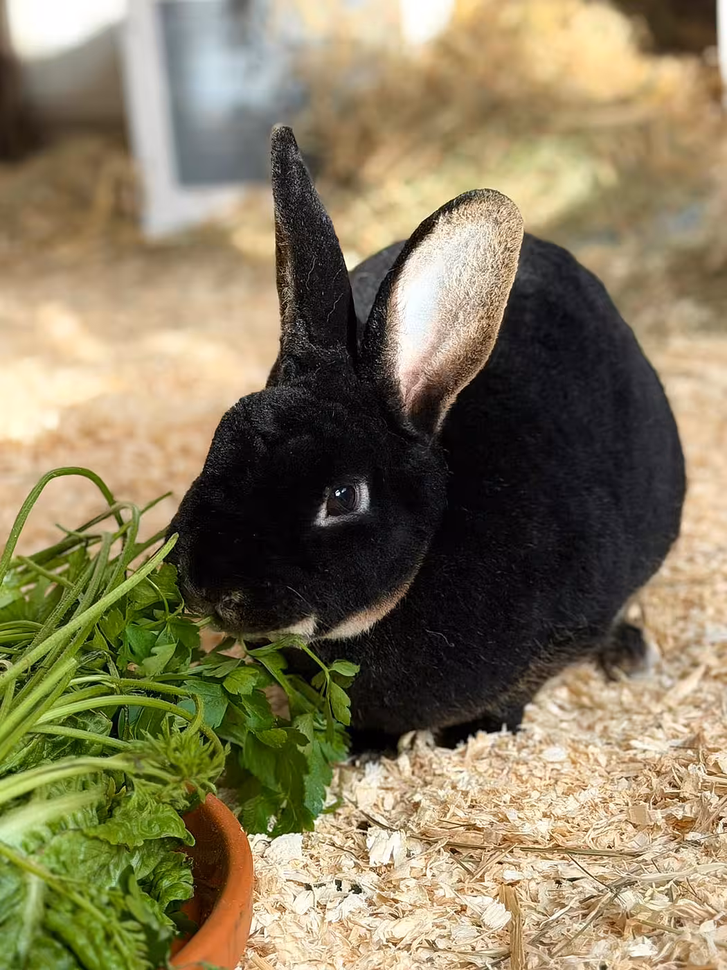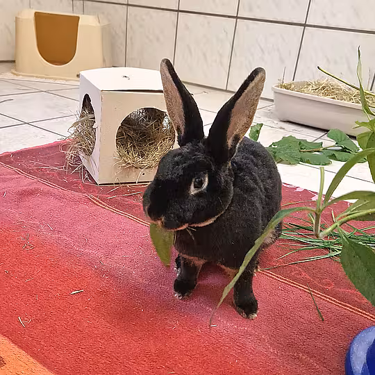 Bedelia lebt derzeit mit ihrer Schwester Brietta bei uns in Außenhaltung. Beide suchen - entweder gemeinsam oder zu einem passenden Partnertier dazu - ein Zuhause mit viel Platz (mindestens 6m² für zwei Kaninchen, 24/7 zugänglich, auf einer Ebene) und artgerechter Ernährung. Ein vorhandenes Außengehege muss ein- und ausbruchssicher sein. Tolle Anregungen und Ideen rund um die Kaninchenhaltung findet man unter Kaninchenwiese .