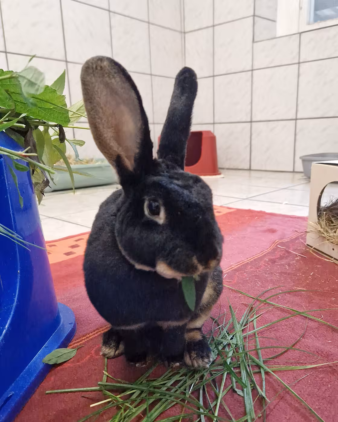Bedelias Mutter stammt aus einem Animal Hoarding Fall bei dem 2024 über 60 Kaninchen den Weg zu uns fanden. In diesem Bestand waren vereinzelt auch Kaninchen dabei die leichte Schnupfensymptome in Form von Niesen und Nasenausfluss zeigten. Auch Bedelia hört man verhältnismäßig häufig niesen und temporär zeigt sich auch bei ihr leichter, klarer Nasenausfluss. Es ist davon auszugehen, dass der Schnupfen ansteckend ist, bei immunstarken Tieren jedoch nicht unbedingt Symptome auftreten müsen. Gesundheitliche Einschränkungen und auch Stress hingegen, sorgen dafür, dass der Schnupfen ausbricht oder sich die Symptomatik verschlimmert.