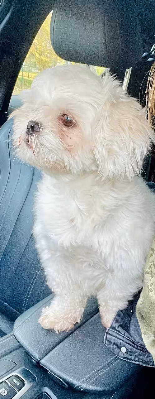 "Ich bin Bucci ein lieber weißer Fellfreund und suche ein neues Zuhause. Ich fahre gerne Auto, bin absolut stubenrein und pflegeleicht. Ich ernähre mich hauptsächlich vegetarisch und esse gerne Gurken und Karotten. Ich brauche auch nicht ständig Betreuung, chille gerne für mich und freue mich wenn wir zweimal am Tag Gassi gehen können. Ich liebe es gestreichelt und gekuschelt zu werden. Ich liebe Kinder und bin auch sehr lieb zu ihnen.Leider war ich nie in einer Hundeschule, aber das kann man noch nachholen und wenn ich aufgeregt bin, belle ich, weil ich mich so freue. Ich ziehe gerne an der Leine, aber all das muss nicht so bleiben, wenn ich eine neue Familie finde.“