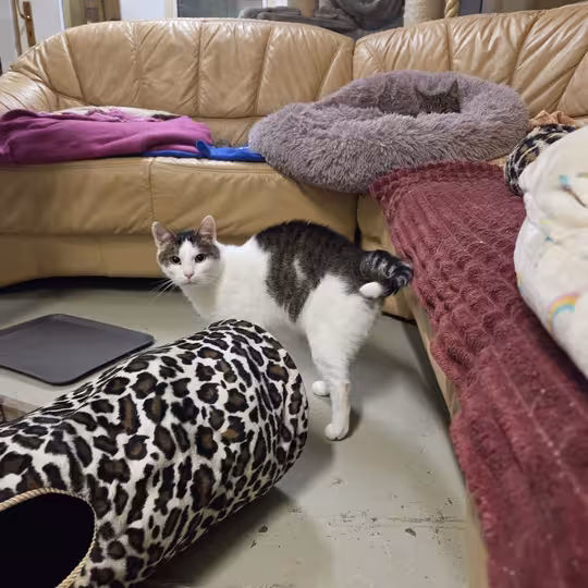 Wir möchten ihn einen Wunsch erfüllen . Ubd zwar den ,das er mit einem oder einer seiner o.g Katzenfreunde ausziehen darf.
