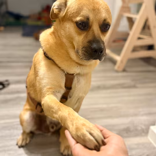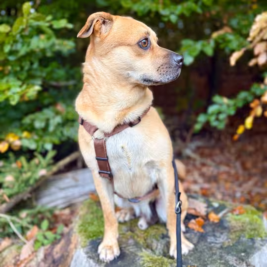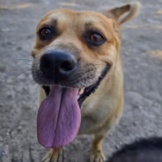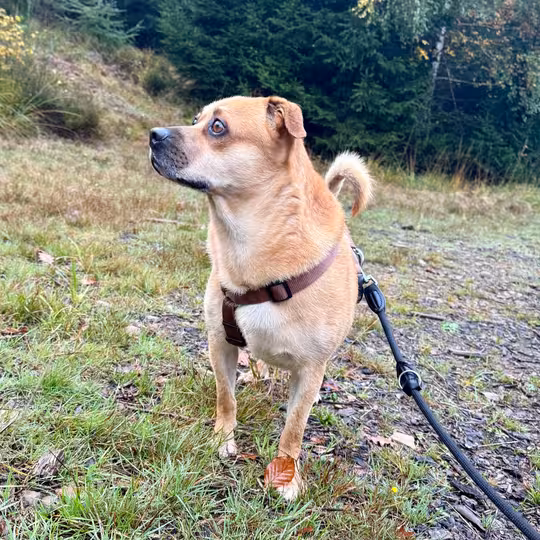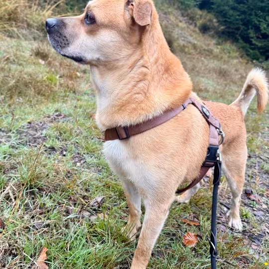Chubby ist ein im Mai 2022 geborener, brauner Mischlingsrüde. Er hat eine Schulterhöhe von 45cm und wiegt derzeit 20 kg.
