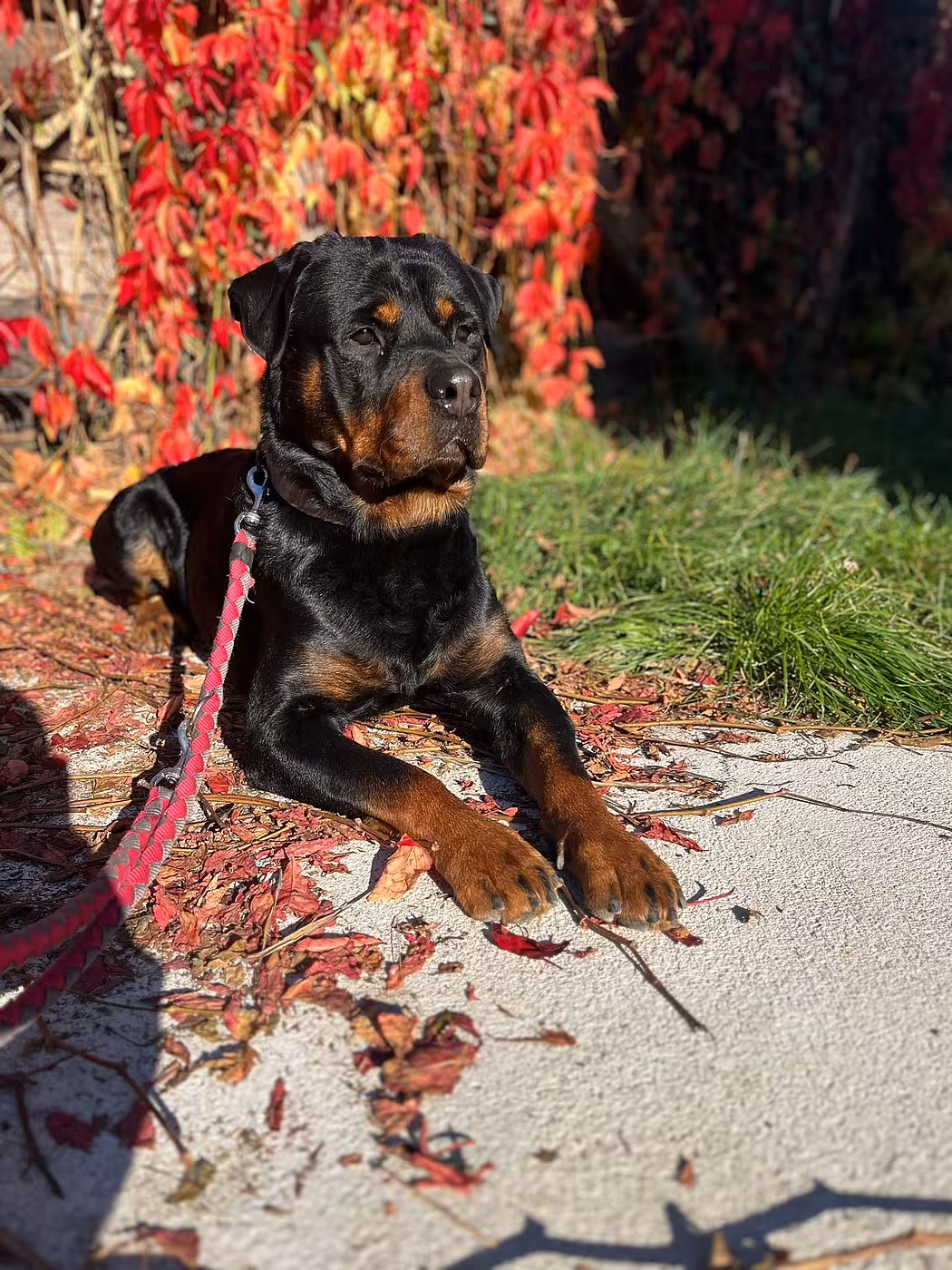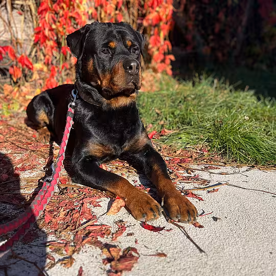 UPDATE 25.12.2025: Don befindet sich mittlerweile in physiotherapeutischer Behandlung, was er wirklich sehr gut mitmacht. Er hat Probleme im Rücken- und Hüftbereich. Zudem ist Don ein sehr massiver Rottweiler, was den gesamten Bewegungsapparat zusätzlich belastet. Aktuell wiegt er 51 kg und hat dabei eine gute, stimmige Linie. Im Umgang mit seiner Bezugsperson zeigt Don deutliche Fortschritte. Mit viel Geduld und vielen kleinen Schritten ist es inzwischen möglich, ihm einen Mantel anzuziehen, ihn zu bürsten und auch Tierarztbesuche – inklusive Impfen – sind für ihn deutlich stressfreier geworden. Don lässt sich wegschicken, Geschirr, Halsband und Leine anlegen und trägt seinen Maulkorb zuverlässig. An seiner Leinenführigkeit muss weiterhin gearbeitet werden, vor allem in reizintensiven Situationen. In ruhiger Umgebung ist Don draußen jedoch ein angenehmer Begleiter. Traktoren und Fußgänger interessieren ihn nicht. An unseren Schafen zeigt er starkes Interesse, auf manche Autos reagiert er ebenfalls und geht dann in die Leine. Mit Don liegt noch ein Stück Arbeit vor uns. Aufgrund seiner körperlichen Beschwerden würden wir uns sehr über Paten freuen, um seine notwendige physiotherapeutische Behandlung weiterhin sicherstellen zu können.