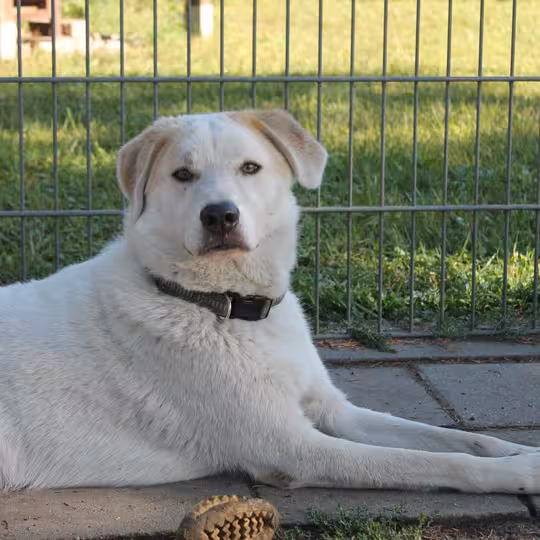 Der Herdenschutzhund-Mix begeistert mit seinem Charme und seiner Lebensfreude.