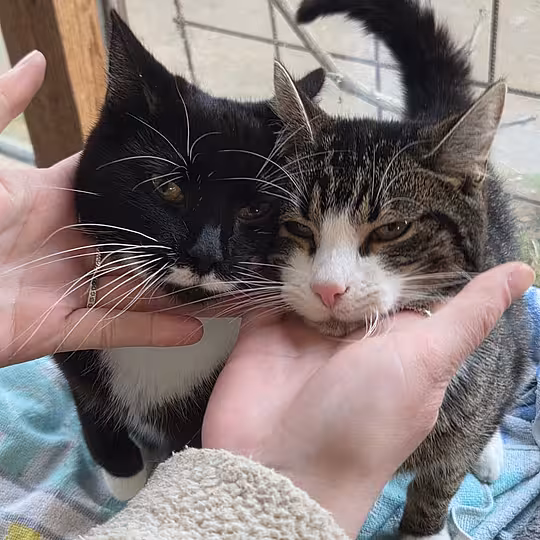 Die beiden perfekten Brüder Elian (getigert) und Emil. Einst als Fundkatzen zu uns gekommen nun auf der Suche nach ganz tollen Menschen.