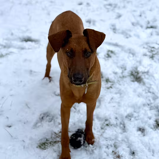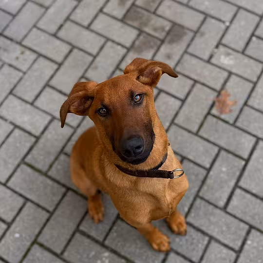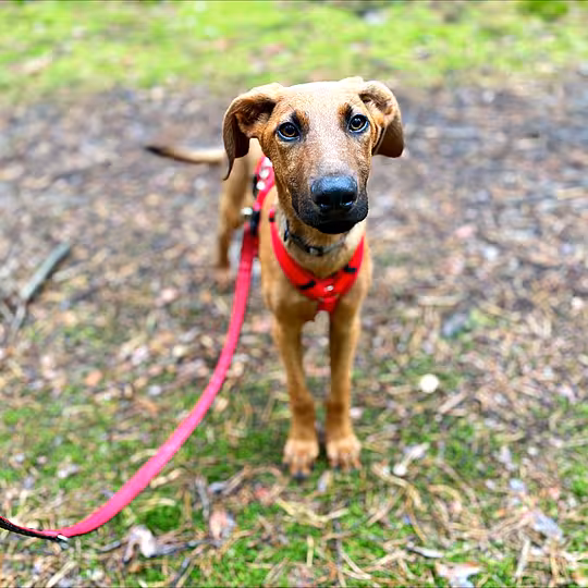 Hugo kam aus einem Partnertierheim zu uns und ist schon ein Weilchen auf der Suche nach einem neuen Zuhause. Der quirlige Junghund sucht ein aktives Zuhause, das viel Zeit und Freude daran mitbringt, ihm das kleine Hunde-1x1 beizubringen und mit ihm souverän durch's Leben geht. Auf Unbekanntes geht Hugo offen und unvoreingenommen zu und ist auch im Erstkontakt mit fremden Menschen sicher und aufgeschlossen. Ältere Kinder im Teenageralter stellen grundsätzlich kein Problem dar. Mit seinen Artgenossen kommt Hugo gut zurecht, allerdings befindet sich unser Teenie gerade mitten in der Pubertät und lässt gerne mal den harten Kerl raushängen. Da rein optisch gesehen auf jeden Fall der Windhund bei Hugos Rassezugehörigkeit mitgemischt hat, ist es schwierig vorherzusehen wie sich der Jagdtrieb zukünftig entwickeln wird - selbstverständlich ist auch in diesem Fall angepasstes Training hilfreich, so ganz unwichtig ist die Erbanlage dabei jedoch natürlich nicht. Außerdem ist Hugo sehr intelligent und möchte auch im neuen Zuhause gut körperlich und geistig ausgelastet werden, damit er sich nicht zu viel Blödsinn ausdenkt, was er zur Zeit viel zuviel macht. Katzen sollten im neuen Zuhause nicht leben, da er es momentan super lustig findet, diese ordentlich zu nerven.