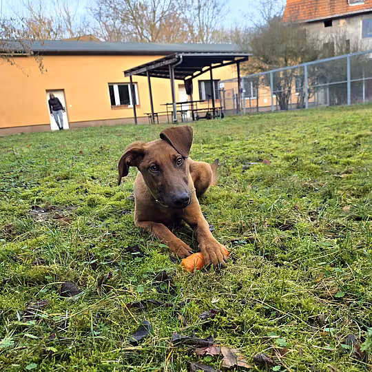 Hugo kam aus einem Partnertierheim zu uns und macht sich langsam auf die Suche nach einem neuen Zuhause. Der quirlige Junghund sucht eine aktive Familie, die viel Zeit und Freude daran mitbringt, ihm das kleine Hunde-1x1 beizubringen und mit ihm gemeinsam die Welt zu entdecken. Auf Unbekanntes geht Hugo offen und unvoreingenommen zu und ist auch im Erstkontakt mit fremden Menschen sicher und aufgeschlossen. Ältere Kinder im Teenageralter stellen grundsätzlich kein Problem dar. Mit seinen Artgenossen kommt Hugo gut zurecht und könnte auch durchaus als Zweithund zu einem souveränen Ersthund ziehen. Da rein optisch gesehen auf jeden Fall der Windhund bei Hugos Rassezugehörigkeit mitgemischt hat ist es schwierig vorherzusehen wie sich der Jagdtrieb zukünftig entwickeln wird - selbstverständlich ist auch in diesem Fall angepasstes Training hilfreich, so ganz unwichtig ist die Erbanlage dabei jedoch natürlich nicht. Außerdem ist Hugo sehr intelligent und möchte auch im neuen Zuhause gut körperlich und geistig ausgelastet werden, damit er sich nicht zu viel Blödsinn ausdenkt.