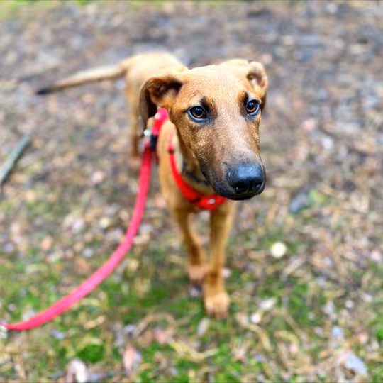 Hugo kam aus einem Partnertierheim zu uns und macht sich langsam auf die Suche nach einem neuen Zuhause. Der quirlige Junghund sucht eine aktive Familie die Zeit und Freude daran mitbringt ihm das kleine Hunde-1x1 beizubringen und mit ihm gemeinsam die Welt zu entdecken. Auf Unbekanntes geht Hugo offen und unvoreingenommen zu und ist auch im Erstkontakt mit fremden Menschen sicher und aufgeschlossen. Auch Kinder halten wir im neuen Zuhause für problemlos. Mit seinen Artgenossen kommt Hugo gut zurecht und könnte auch durchaus als Zweithund zu einem souveränen Ersthund ziehen. Da rein optisch gesehen auf jeden Fall der Windhund bei Hugos Rassezugehörigkeit mitgemischt hat ist es schwierig vorherzusehen wie sich der Jagdtrieb zukünftig entwickeln wird - selbstverständlich ist auch in diesem Fall angepasstes Training hilfreich, so ganz unwichtig ist die Erbanlage dabei jedoch natürlich nicht.