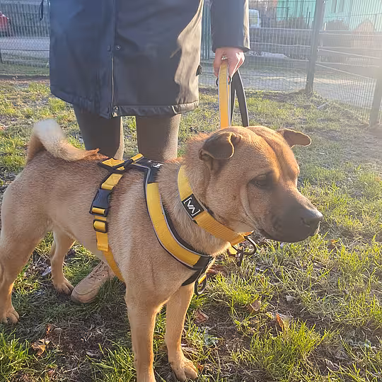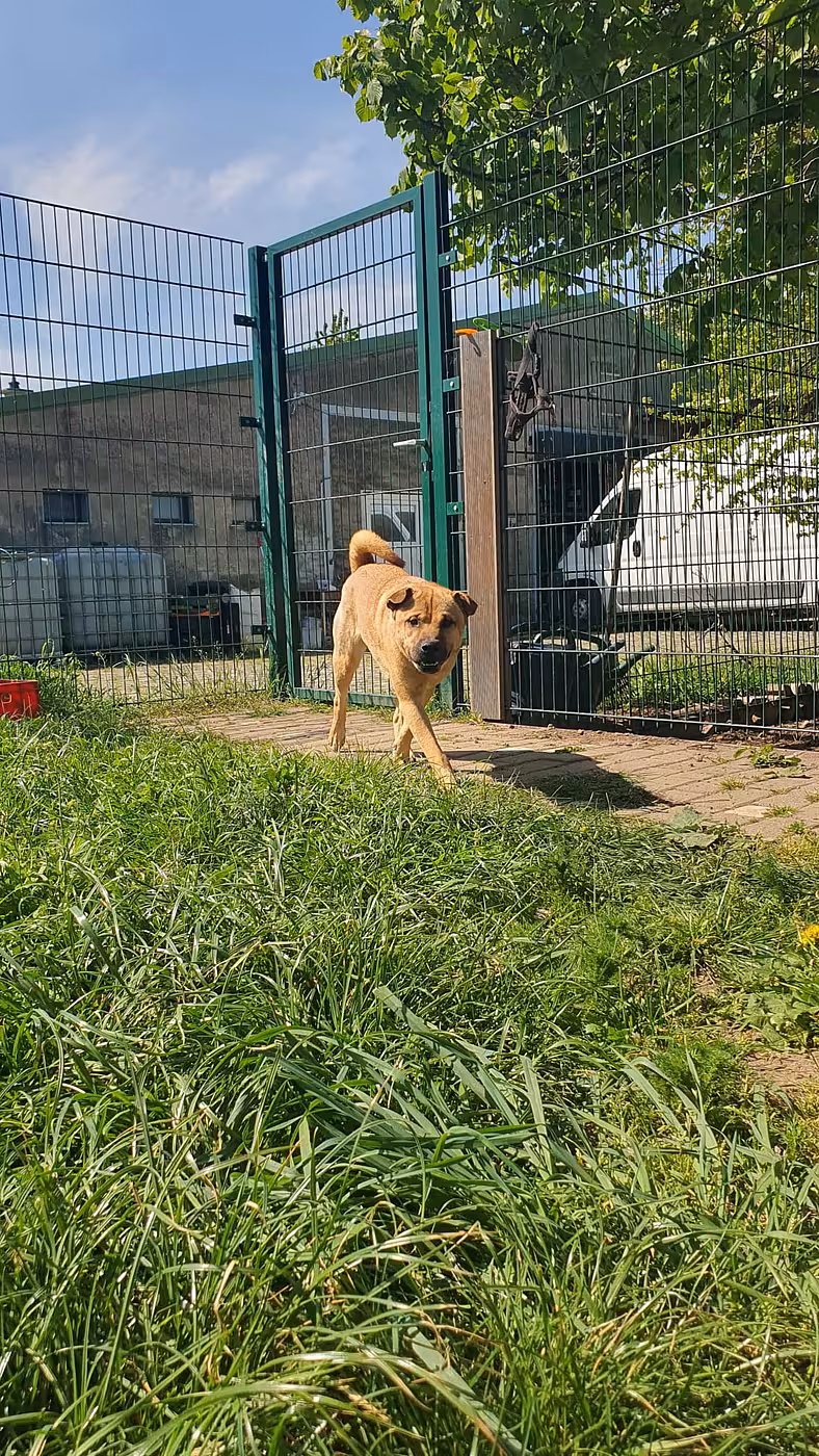 Jamie ist ein Sharpei-Mix, der als Fundhund zu uns ins Tierheim kam. Schon zu Beginn zeigte sich, dass er Themen rund um Futter und Ressourcen hat und dazu neigt, Dinge für sich zu beanspruchen. Besonders Männern gegenüber war er anfangs sehr skeptisch. Nach einiger Zeit erhielten wir eine vielversprechende Anfrage von einem Pärchen. Die Vermittlung wurde eng durch unsere Hundetrainerin begleitet und verlief zunächst sehr positiv. Jamie lebte sich gut ein, war sogar mit seiner neuen Familie im Urlaub, zeigte sich verträglich mit anderen Hunden und verhielt sich insgesamt unauffällig. Leider kam es dennoch zu einem Beißvorfall, weshalb Jamie wieder zu uns zurückgebracht wurde. In beiden Fällen stand der Vorfall im Zusammenhang mit Ressourcen – einmal mit Futter, einmal mit Sofa\Bett. Wir raten dringend davon ab, Jamie Zugang zu Sofa oder Bett zu gewähren, und empfehlen auch weiterhin ein klares Management im Umgang mit Futter. Hier ist Aufmerksamkeit und Erfahrung gefragt. Abseits dieser Themen ist Jamie ein sehr aktiver Hund mit viel Energie, die sinnvoll ausgelastet werden möchte, um unerwünschtes Verhalten zu vermeiden. Er kuschelt gerne, testet aber auch seine Grenzen. Jamie braucht eine konsequente, ruhige Führung – nicht zu streng, da er sensibel ist, aber klar und verlässlich. Jamie trägt seinen Maulkorb zuverlässig. Mit unsicheren Menschen kann er nicht gut umgehen, weshalb ein souveränes Umfeld für ihn wichtig ist. Aktuell hat er bei uns eine feste Gassigeherin, zu der er eine gute Bindung aufgebaut hat. Für Jamie suchen wir hundeerfahrene Menschen, ohne Kinder, die bereit sind, weiterhin mit Training, Management und Geduld an seinen Themen zu arbeiten und ihm einen strukturierten, sicheren Rahmen zu bieten.