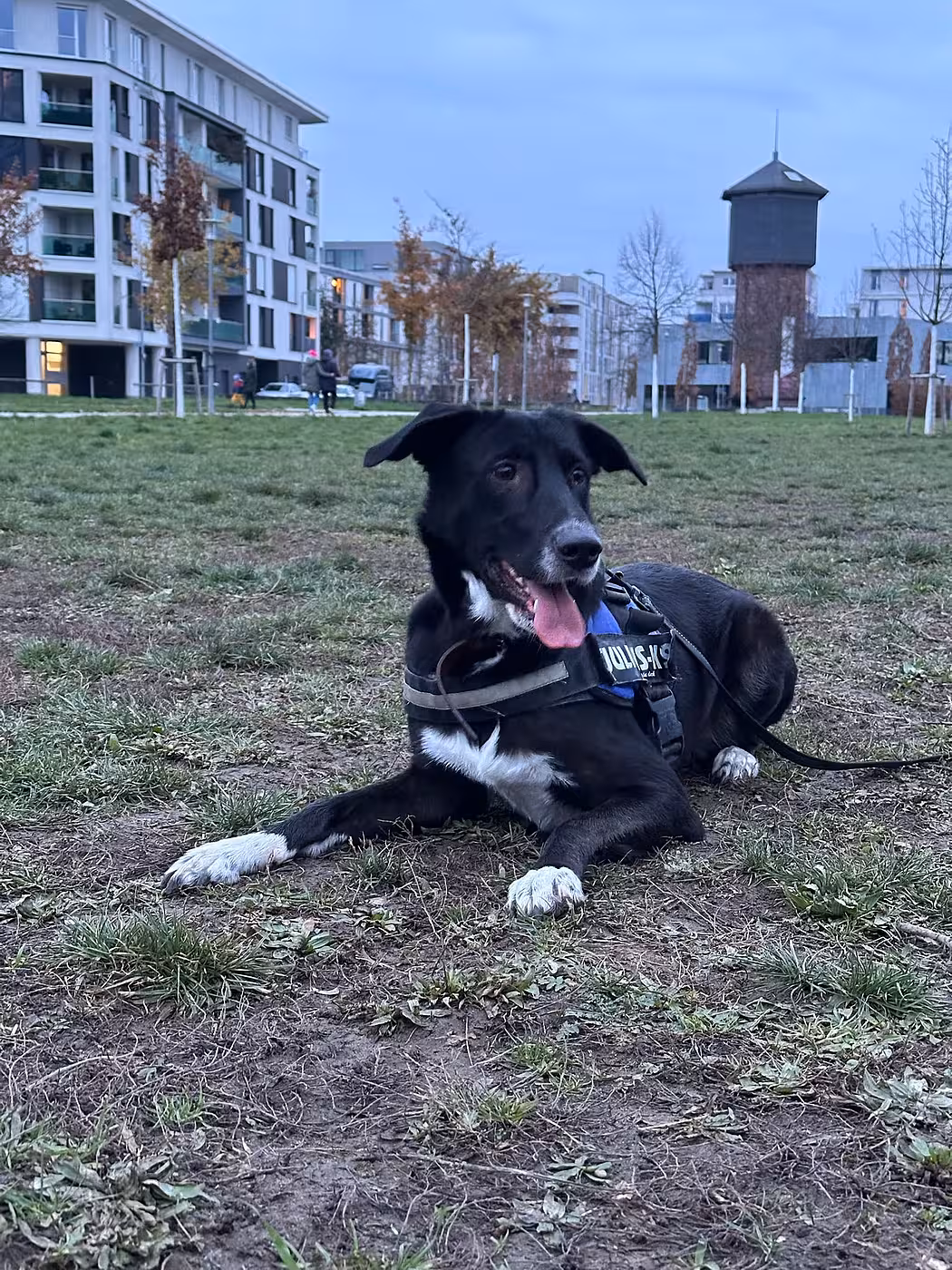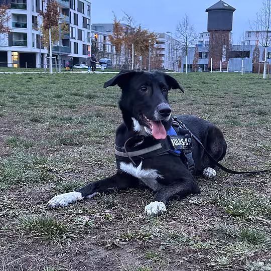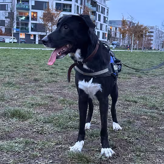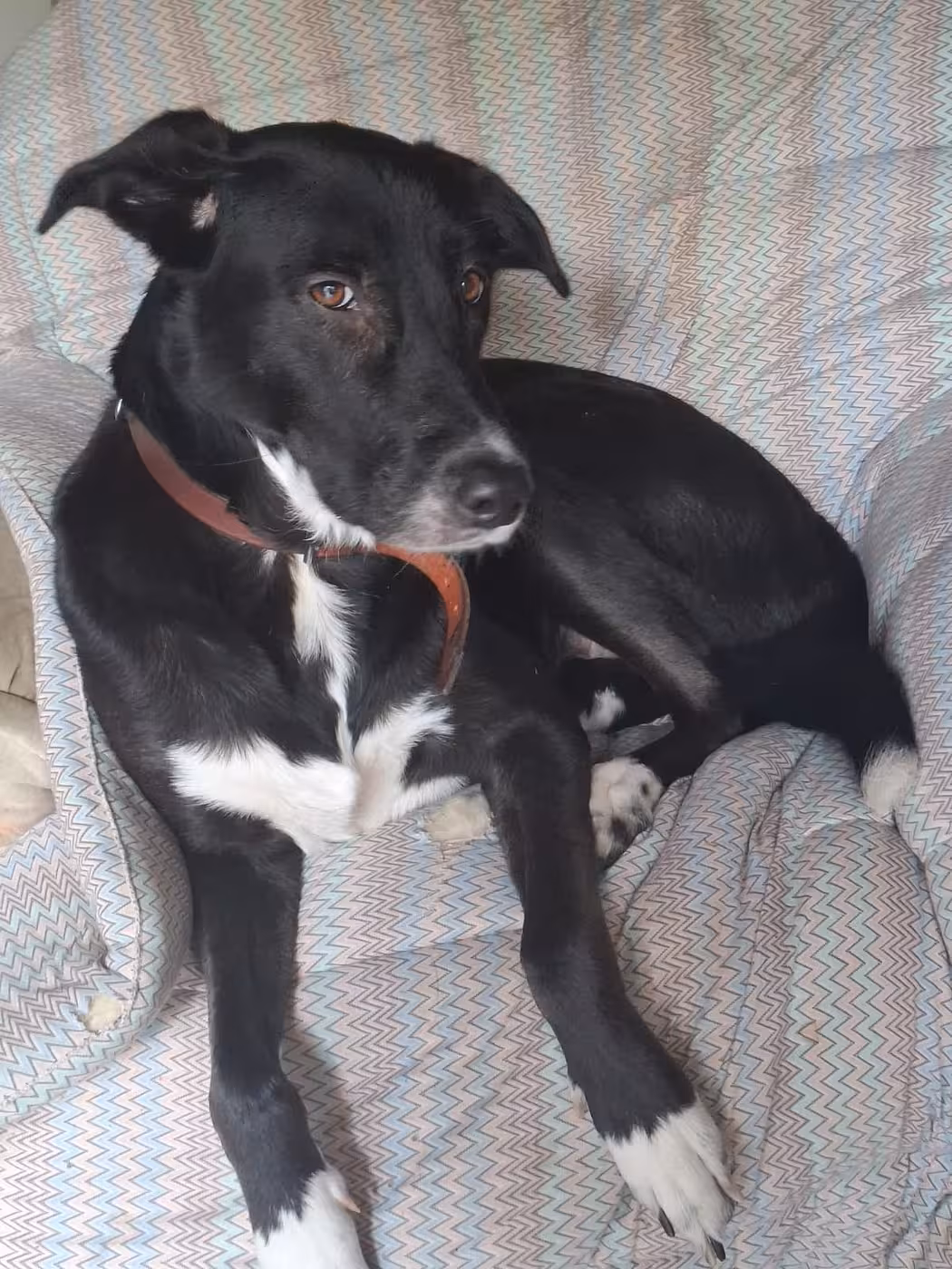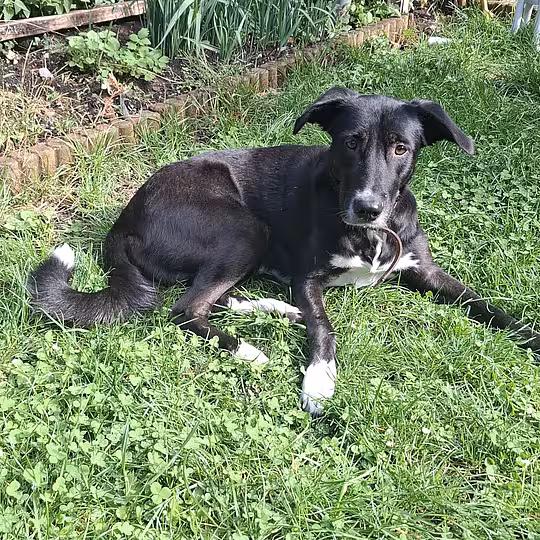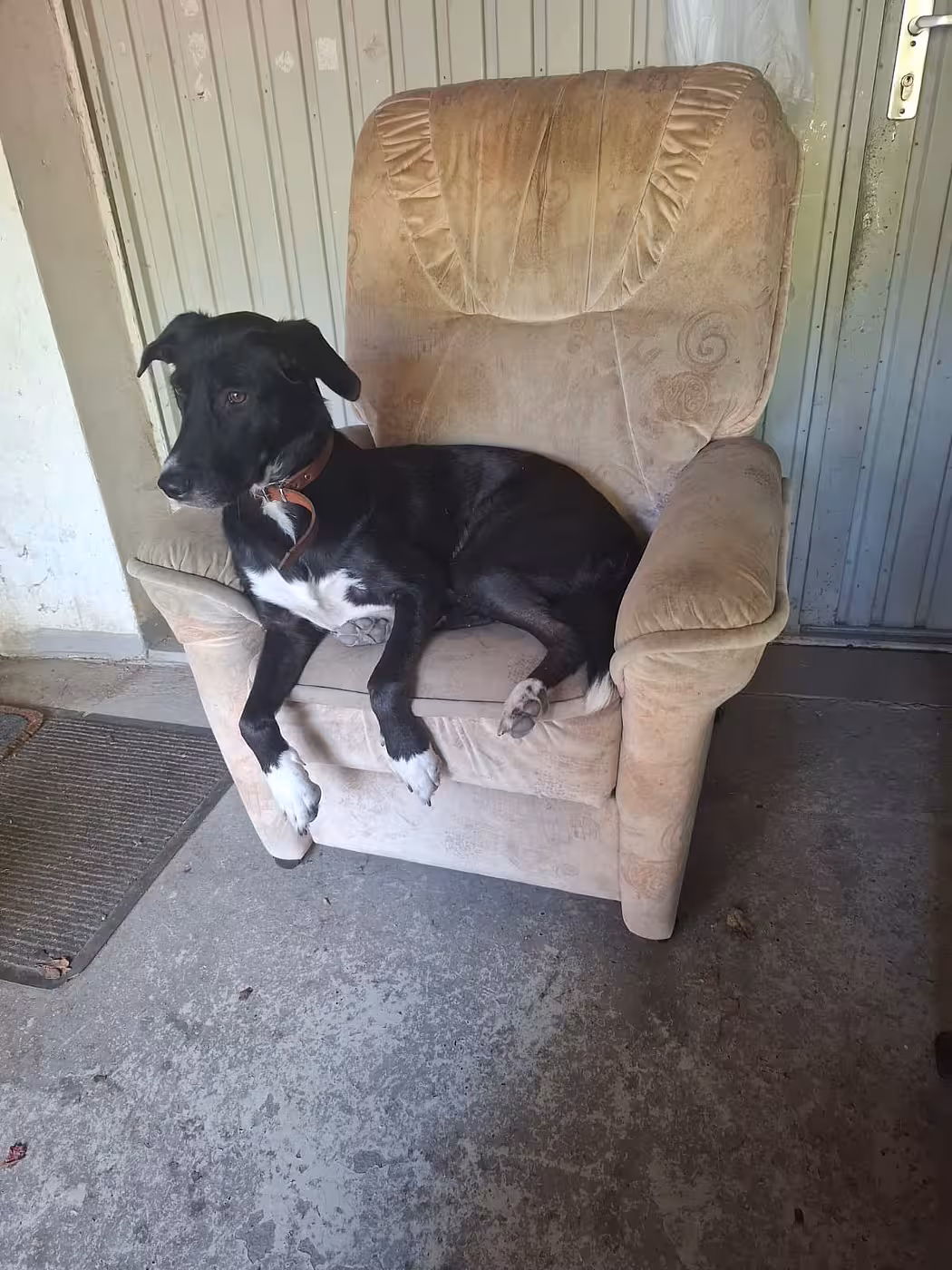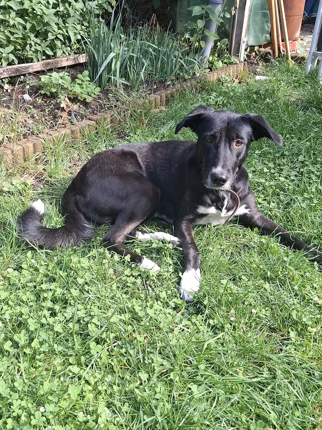 Caizy ist eine Mitte Januar 2023 geborene, schwarze Mischlingshündin mit weißen Abzeichen. Sie hat eine Schulterhöhe von 60 cm und wiegt 27 Kg. Sie ist gechippt und geimpft.
