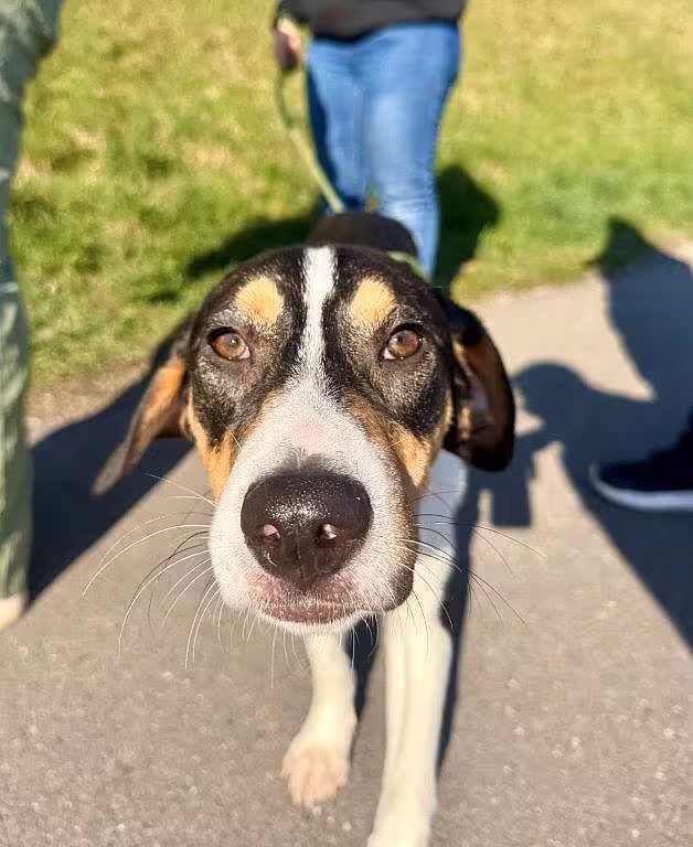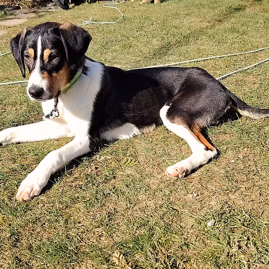 Manda ist eine Ende Juli 2025 geborene, dreifarbiger Mischlingshündin. Sie wird später voraussichtlich mittelgroß bis groß werden. Sie ist gechippt und geimpft.