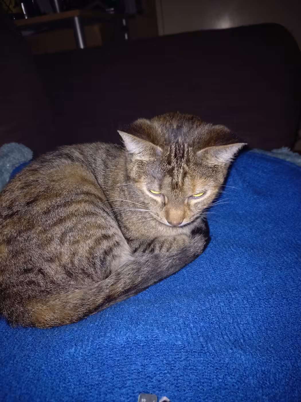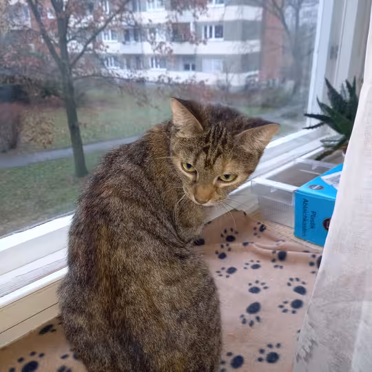 Mini wurde am 27.05.2021 in Berlin geboren. Sie ist eine europäische Kurzhaar-Katze (Black Tabby). Sie ist kastriert und geimpft. Mit 5 Monaten wurde sie an einen Herren vermittelt, der dann leider verstarb. Nun lebt sie wieder bei mir, verträgt sich aber nicht mehr mit ihren Geschwistern.