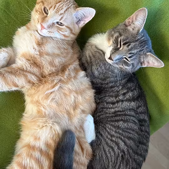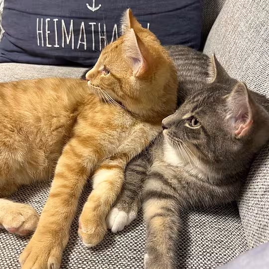 Beide sind sehr verschmust, anhänglich und menschenbezogen. Sie genießen jede Streicheleinheit und sind am liebsten immer mitten im Geschehen dabei. Gleichzeitig sind sie lebhaft, verspielt und neugierig – typische junge Kater, die Freude an Bewegung, Spiel und gemeinsamer Beschäftigung haben.
