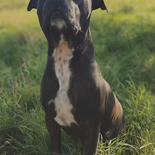 Robin kam mit seiner Freundin Ursel und seinen Kollegen Zasko und Christian im Oktober 2023 zu uns ins Tierheim. Der hübsche AmStaff Rüde ist ein sehr anhänglicher, aufgeweckter, verschmuster Kerl der noch viel lernen will und muss. Wie bei seinem Terrierkumpel steckt auch in ihm der Jagdtrieb. Seine Leinenführigkeit ist ausbaubar und auch so muss noch viel Zeit und Spucke in seine Erziehung gesteckt werden. Robin wird als bedingt sozialverträglich vermittelt da auch er ein Hund ist der nach Sympathie entscheidet, vorallem hat er an der Leine Probleme bei Begegnungen mit Fremdhunden. Sein größtes Problem liegt in der Frustration, wenn ihm etwas nicht schnell genug geht oder er etwas sieht wo er hin möchte aber nicht kann/darf überdreht er und schnappt - nicht böswillig - um sich. Robin braucht eine ganz klare Führung, eine selbstbewusste Hand die ihm Ruhe vermittelt und ein paar Stunden in der Hundeschule um der Hund zu werden der er eigentlich ist: ein ganz toller, lieber, hübscher Kerl. Robin ist geimpft/gechippt und entwurmt. An den Maulkorb wird er aktuell gewöhnt um gut mit im Arbeiten und Trainieren zu können. Für ihn wünschen wir uns eher ruhige aber dennoch aktive Menschen, die keine Scheu haben den Burschen auf die richtige Bahn zu lenken. Hunde(-rassen)erfahrung wird vorrausgesetzt. Familien mit Kindern müssen wir nach der gesammelten Erfahrung leider ausschließen, da Robin sich vermehrt eher negativ kleineren Kindern (7 und 8 Jahre) gegenüber gezeigt hat.