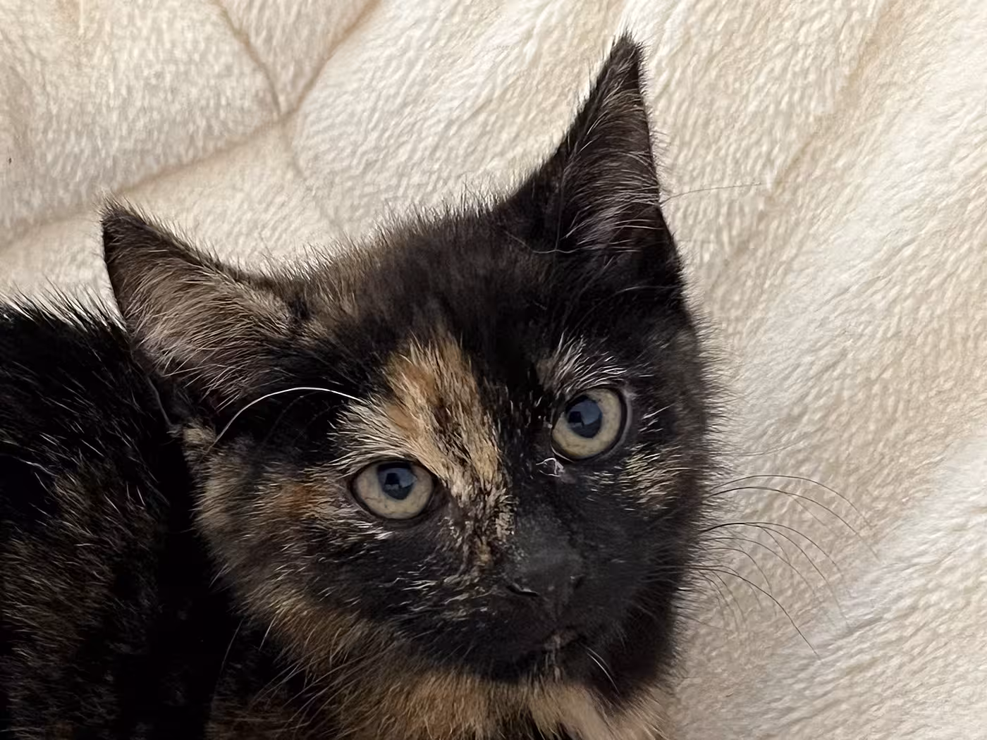 Salome kam zusammen mit ihren drei Geschwistern von einem Bauernhof zu uns. Anfangs ist sie noch etwas schüchtern, aber mit ein wenig Geduld zeigt sie schnell, wie neugierig und verspielt sie ist. Besonders gern tobt sie mit ihrer Schwester Hilde durch die Gegend – die beiden sind ein eingespieltes Team!