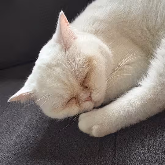 Snow kam ende 2025 in unsere Obhut , sie kam als vermeintliche Fundkatze - mittlerweile sind wir uns allerdings sicher, dass sie ausgesetzt wurde.
