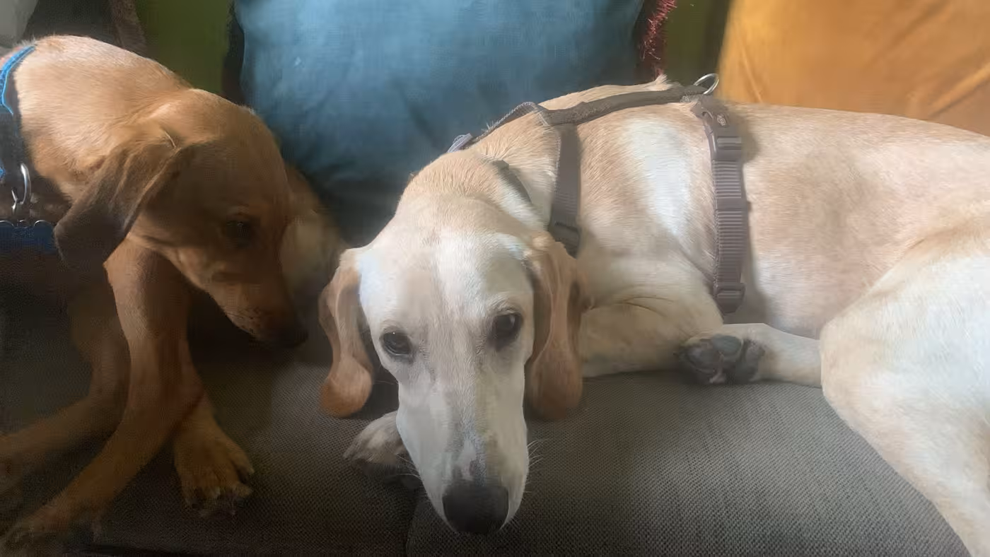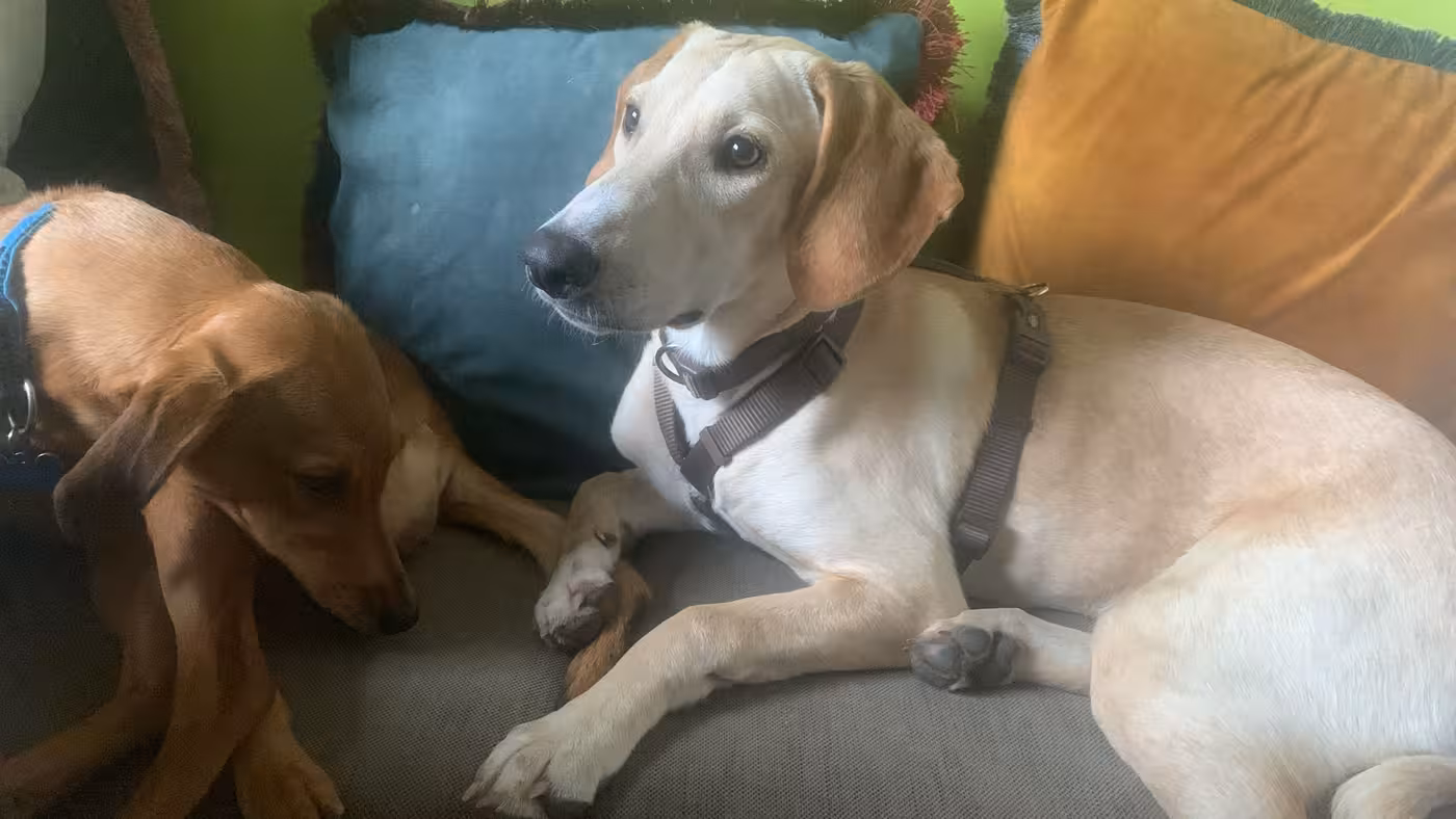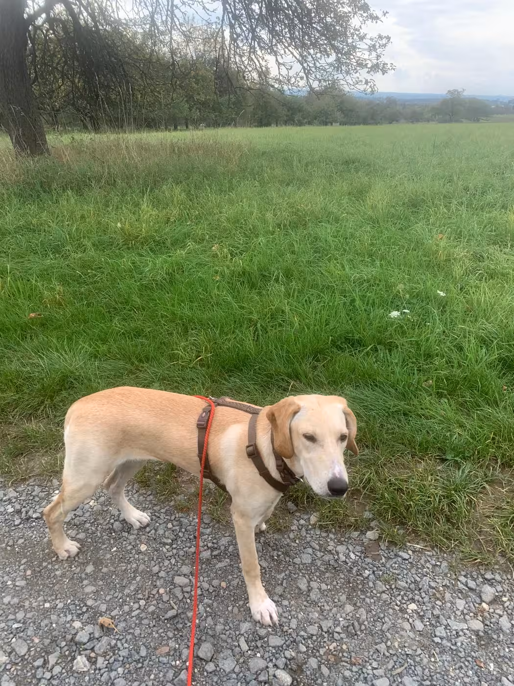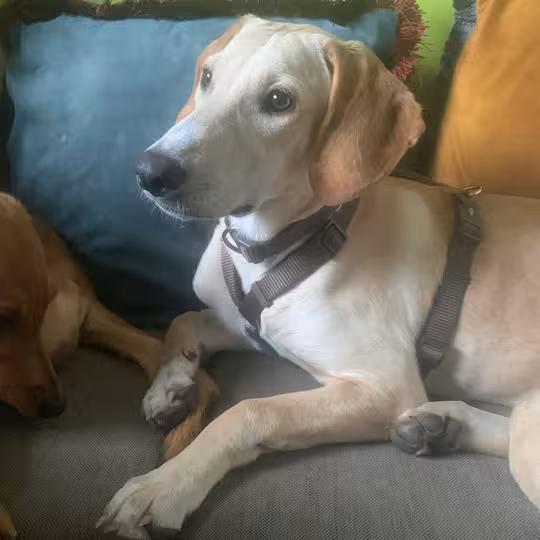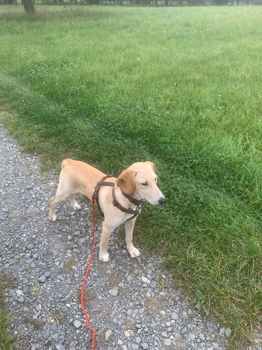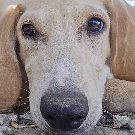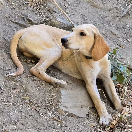 Taby ist eine Mitte März 2025 geborene, beige Mischlingshündin. Sie hat eine Schulterhöhe von 47 cm und wiegt 17 Kg und ist gechippt und geimpft.