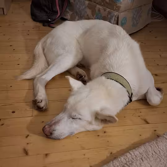 Hakon ist ein absolut verschmuster Hund, der trotz seiner Vorgeschichte dem Menschen zugewandt ist. Hakon war in Norwegen als Schlittenhund im Einsatz und war dort an der Kette gehalten, wie es dort üblich ist.